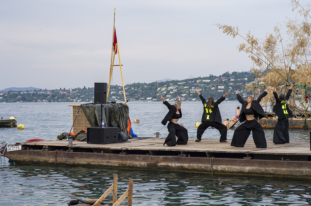 Dans les dernières minutes de cette performance, le mot AQUA fut scandé en DURCH, en référence à cette denrée de plus en plus rare, qui était l’élément mis à l’honneur de cette biennale de trois semaines qui réunit plus de 90 collectifs d’art indépendants. De Cerise Rossier Avec Cerise Rossier, Alice Roudaire, Sarah Waelchli et Naomi Weidmann. Musique Simone Aubert et POL. Co production BIG, subvention d’une fondation privée et la ville de Nyon